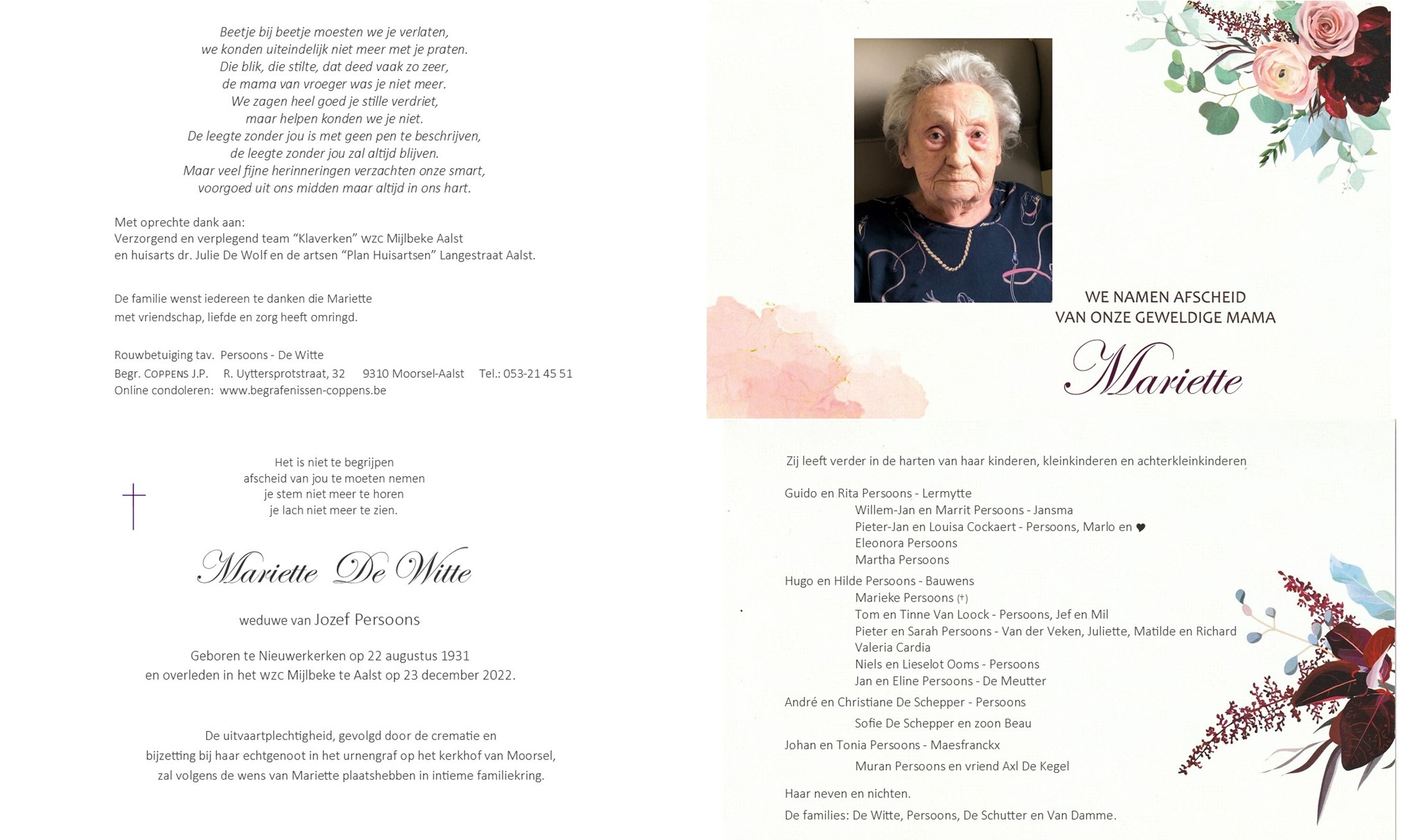 CONDOLEREN: Mariette De Witte
